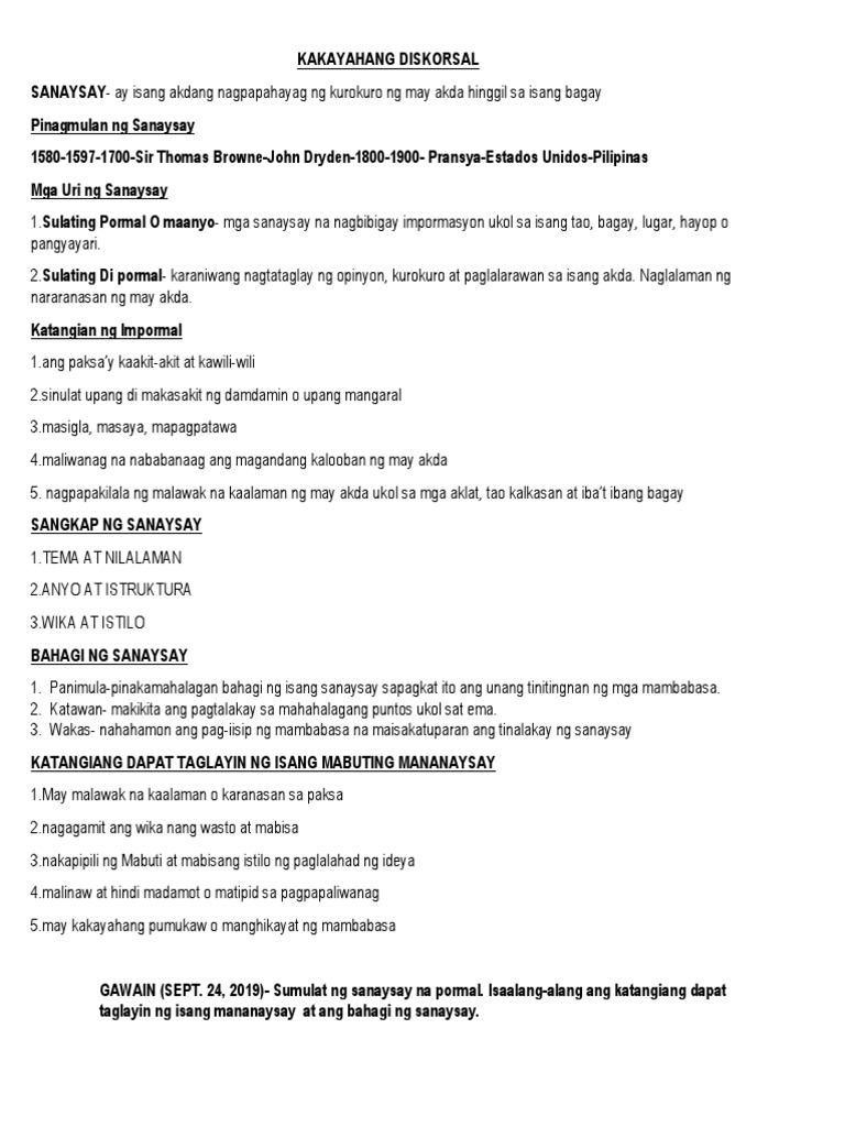 SANAYSAY Kahulugan Mga Uri At Mga Bahagi Nito.