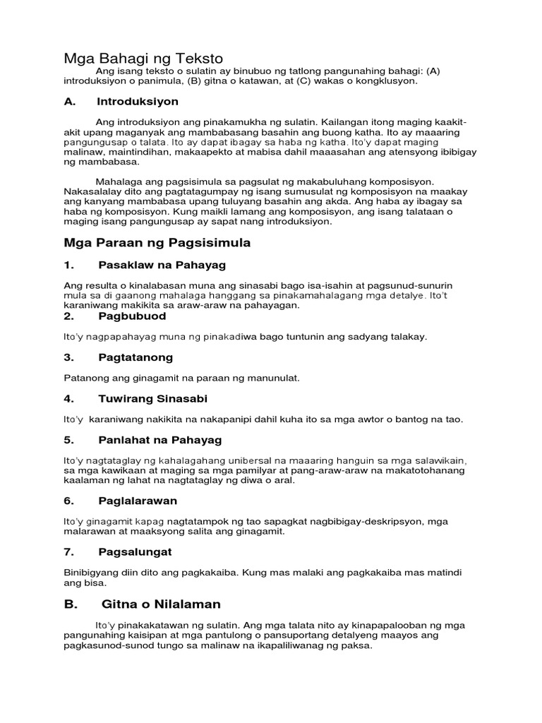 Mga Bahagi Ng Teksto. At Nakabubuo at nakasusulat ng isang halimbawa ng tekstong narativ at ekspositori. Ano ang propayl ng mga mag-aaral ng mga.