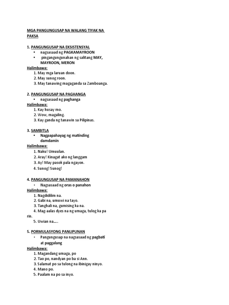 Mga Pangungusap Na Walang Tiyak Na Paksa Pdf