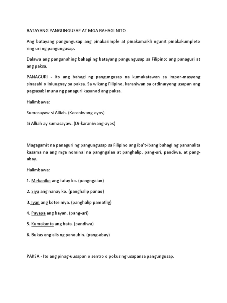 Batayang Pangungusap At Mga Bahagi Nito Pdf